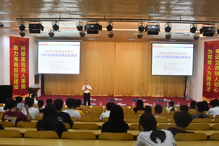 為進一步普及在校學生的應急救護知識,學習掌握急救操作技能,提高安全防范意識,增強自救互救,5月12日下午,我校聯(lián)合??谑?20急救中心、??谑屑t十字會、海南省急救醫(yī)學培訓中心開展CPR+AED使用急救技能培訓。