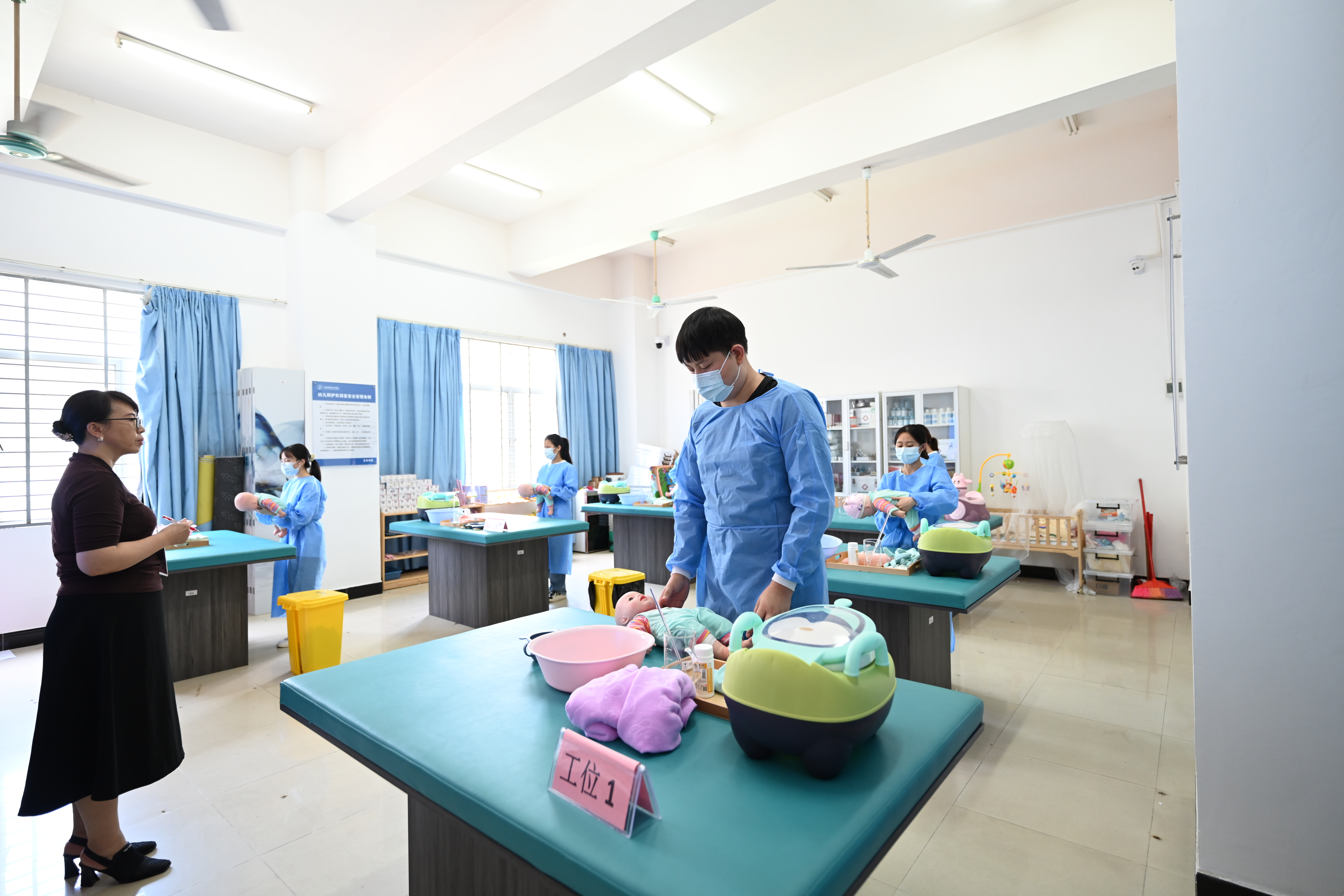 育嬰員實操考試現(xiàn)場(繼續(xù)教育學(xué)院供圖)