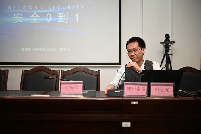 在培訓(xùn)環(huán)節(jié),海南神州希望網(wǎng)絡(luò)有限公司的技術(shù)總監(jiān)韓弘光通過系列網(wǎng)絡(luò)安全案例,圍繞新聞事件引發(fā)網(wǎng)絡(luò)暴力、信息泄露,公眾宣傳媒介網(wǎng)絡(luò)風(fēng)險隱患,勒索病毒網(wǎng)絡(luò)攻擊,即時通訊軟件造成個人信息泄露以及國際事件引申至網(wǎng)絡(luò)之戰(zhàn)等一件件或大或小的網(wǎng)絡(luò)安全事件,向大家解析了網(wǎng)絡(luò)安全觀,深入淺出地講解了網(wǎng)絡(luò)安全的基本知識和防范技巧。韓弘光及其網(wǎng)絡(luò)安全服務(wù)團(tuán)隊作為攻擊組還帶領(lǐng)涉網(wǎng)人員進(jìn)行了網(wǎng)絡(luò)安全應(yīng)急演練。通過模擬,對網(wǎng)絡(luò)攻防進(jìn)行仿真操作。