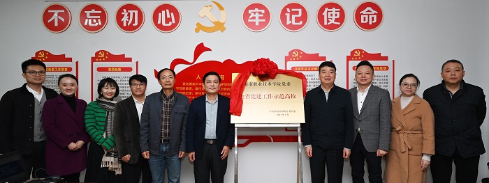 武耀廷為海南職業(yè)技術(shù)學(xué)院黨委授予“全省黨建工作示范高校”牌匾(黨委宣傳部供圖)