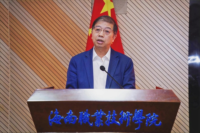 海南職業(yè)技術(shù)學(xué)院校長助理沈振國致辭(海職院供圖)