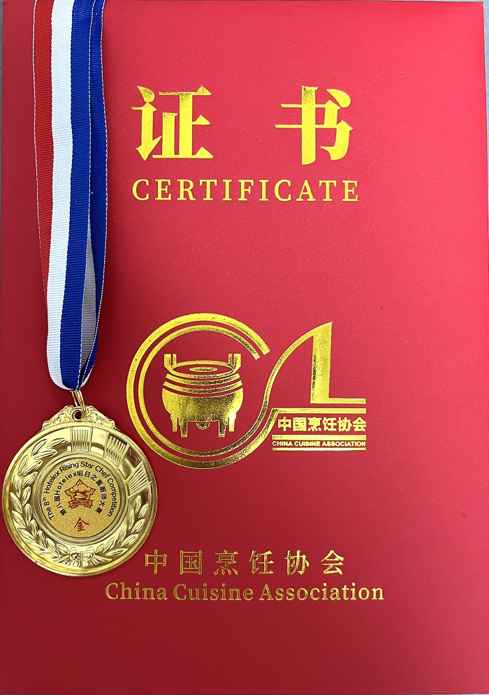 3月27日-29日,由中國烹飪協(xié)會主辦、中國烹飪協(xié)會餐飲教育工作委員會承辦的第八屆“HOTELEX明日之星”廚師大賽在上海舉行。來自全國的60多所院校約500余名選手參加,經(jīng)過激烈角逐,我校烹飪專業(yè)教師廖秀奇憑借扎實的基本功、沉著的臨場發(fā)揮最終榮獲中式藝術(shù)冷拼項目金獎。