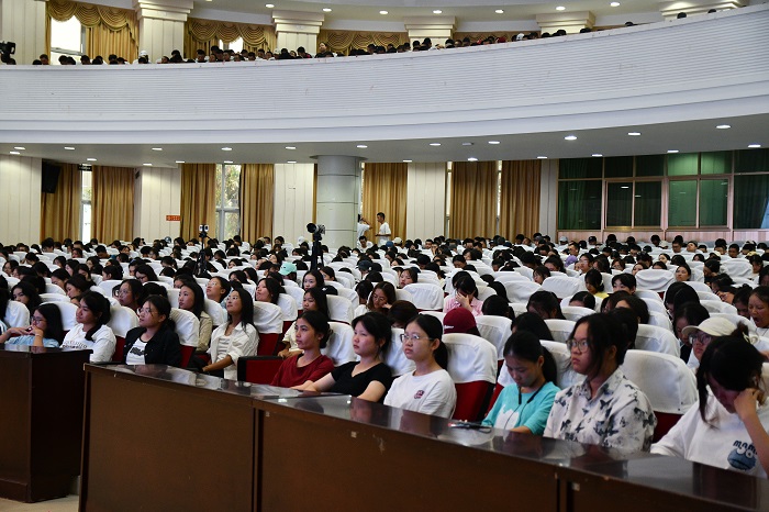 學(xué)校后勤公司總經(jīng)理巴元慧、校務(wù)辦公室副主任戚睿等有關(guān)部門負(fù)責(zé)人,以及1000余名師生代表參加講座。