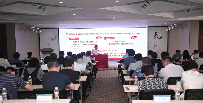 學校全體中層干部、黨支部書記、民主黨派人士、留學歸國人員代表聆聽了宣講。此次宣講是我校學習貫徹黨的二十屆三中全會精神培訓班的第一講。培訓班采用理論與實踐學習相結合、線下與線上學習相結合、校內(nèi)與校外學習相結合等方式安排了三天的培訓內(nèi)容,旨在促進教職員工學懂弄通悟透全會精神,切實提升履職盡責能力。