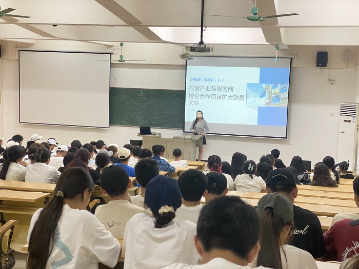 10月17日,我校經(jīng)濟管理學(xué)院電子商務(wù)專業(yè)的師生匯聚一堂,在第二教學(xué)樓舉行“抖音產(chǎn)業(yè)帶服務(wù)商”校企合作項目啟動大會。