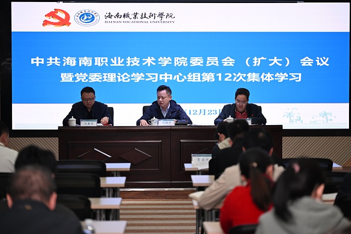 12月23日下午,我校召開第12次黨委(擴(kuò)大)會(huì)議,傳達(dá)學(xué)習(xí)習(xí)近平總書記在聽取海南省委和省政府工作匯報(bào)時(shí)的重要講話精神,海南省委常委會(huì)(擴(kuò)大)會(huì)議精神,海南省委教育工委、省教育廳黨組(擴(kuò)大)會(huì)議精神;初步傳達(dá)學(xué)習(xí)第二十八次全國(guó)高校黨的建設(shè)工作會(huì)議精神;學(xué)習(xí)省委常委,省政府黨組副書記、常務(wù)副省長(zhǎng)巴特爾在我校講授思想政治課精神;學(xué)習(xí)《中共海南省委教育工作委員會(huì)關(guān)于進(jìn)一步加強(qiáng)和規(guī)范黨的組織生活制度的通知》,《中共海南省委教育工作委員會(huì)海南省教育廳關(guān)于做好今冬明春校園安全穩(wěn)定重點(diǎn)工作的通知》,并部署學(xué)校下一步工作。校黨委書記周炳才主持會(huì)議。