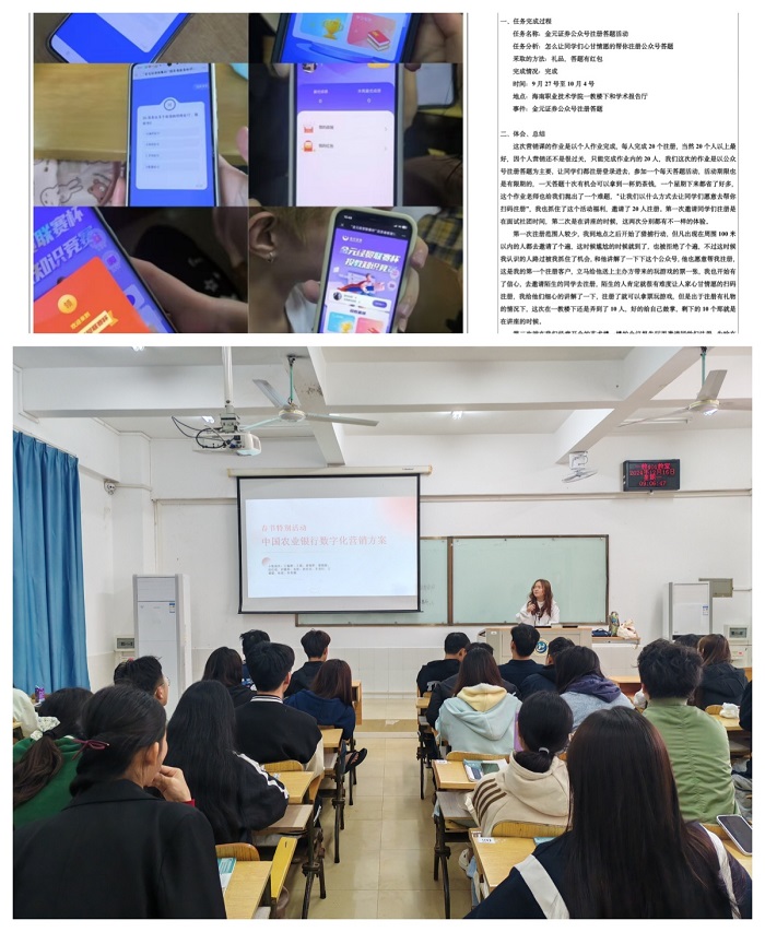 在課程體系重構(gòu)方面,王利老師將金融科技的最新應(yīng)用融入教學(xué)內(nèi)容,如智慧銀行、數(shù)字化營銷、智能客服等,使學(xué)生能夠緊跟行業(yè)發(fā)展的步伐,更好地理解和適應(yīng)市場(chǎng)變化。此外,課程還特別強(qiáng)調(diào)了數(shù)據(jù)分析、客戶洞察及創(chuàng)新能力的培養(yǎng),這些都是當(dāng)前金融市場(chǎng)對(duì)金融營銷人員提出的新要求。