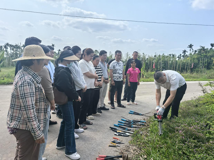 “雙導師”陣容全程陪伴,來自學校的專業(yè)教師憑借扎實的理論知識,為學員們答疑解惑;定安本地的“土專家”則憑借豐富的實踐經(jīng)驗,手把手指導學員。在雙導師耐心指導下,學員們認真研習每一個修剪技巧,從工具的正確握持姿勢,到修剪角度的精準把控,都力求做到盡善盡美。大家沉浸在“邊學邊做、邊做邊學”的良好氛圍中,在實踐中不斷深化對理論知識的理解,將課堂所學切實轉(zhuǎn)化為實際操作能力。