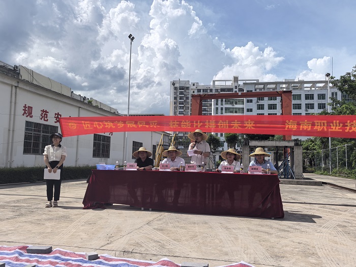 本次大賽采取“師生同賽、校企同賽”的創(chuàng)新模式,企業(yè)砌筑師傅、專業(yè)教師、學生同臺競技,共同呈現一出高水平職業(yè)技能比拼盛宴。開幕式上,海南粵鑫集團董事長郭勝平致辭,上海開藝設計集團海南分公司常務副總經理林明宣擔任裁判長,我校教務處副處長李少敏、工信學院副院長陳翠琴、智慧建筑專業(yè)群主任李福龍等出席開幕式。