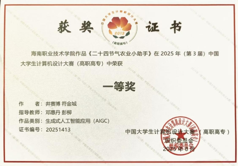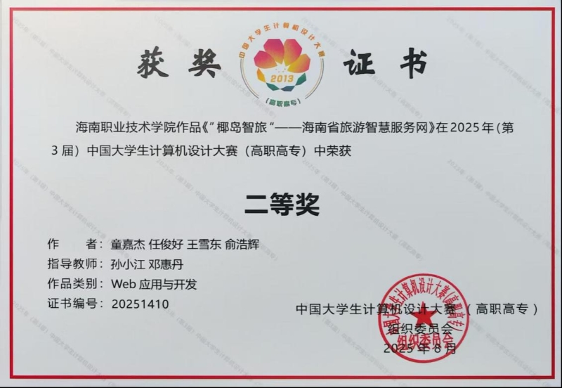 8月6日,2025年第 3屆中國大學(xué)生計(jì)算機(jī)設(shè)計(jì)大賽(高職高專)全國總決賽在上海圓滿落幕。我校工業(yè)與信息學(xué)院智能信息技術(shù)專業(yè)群學(xué)生憑借出色的專業(yè)能力與創(chuàng)新思維,在賽事中大放異彩,分別榮獲生成式人工智能應(yīng)用類別一等獎,Web 應(yīng)用與開發(fā)類別二等獎,充分彰顯了我校學(xué)子在計(jì)算機(jī)領(lǐng)域的卓越實(shí)力。
