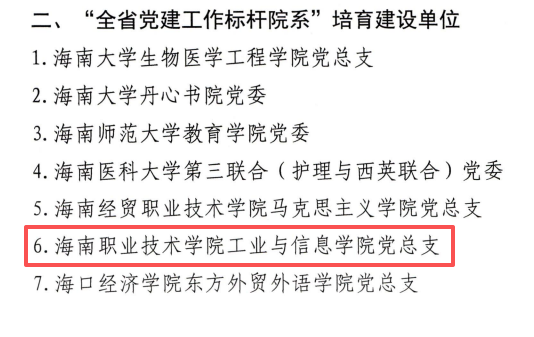 近日,中共海南省委教育工作委員會公布全省第四批新時(shí)代高校黨建示范創(chuàng)建和高校“雙帶頭人”教師黨支部書記工作室培育建設(shè)名單。其中,我校工業(yè)與信息學(xué)院黨總支入選“全省黨建工作標(biāo)桿院系”培育建設(shè)單位;工業(yè)與信息學(xué)院第二黨支部入選“全省黨建工作樣板支部”培育建設(shè)單位;旅游學(xué)院第一黨支部書記工作室入選“雙帶頭人”教師黨支部書記工作室培育建設(shè)名單。