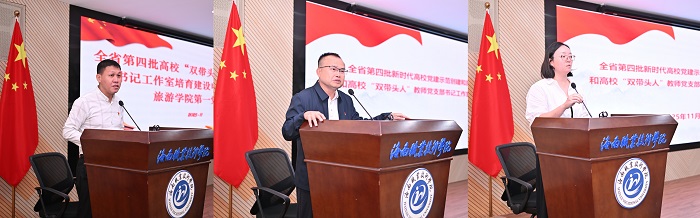 入選全省第四批新時代高校黨建示范創(chuàng)建和質(zhì)量創(chuàng)優(yōu)工作和高校“雙帶頭人”教師黨支部書記工作室培育創(chuàng)建單位的黨組織書記分享經(jīng)驗(黨委宣傳部供圖)