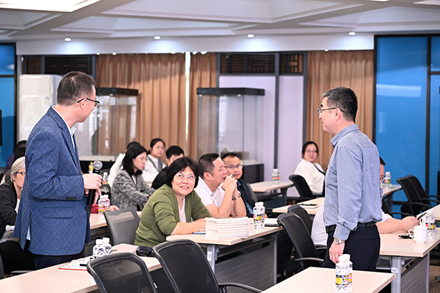 講座現(xiàn)場氛圍熱烈融洽,互動頻繁,陳正江研究員以生動鮮活的案例、通俗易懂的語言,圍繞職業(yè)教育改革的最新政策部署展開深度解讀。他緊密結(jié)合高職院校專業(yè)建設(shè)、人才培養(yǎng)、師資隊伍建設(shè)等實際工作場景,精準(zhǔn)剖析政策落地的核心要點與院校發(fā)展的重點任務(wù),講解過程中不時與現(xiàn)場教職工進(jìn)行眼神交流、即時互動,主動詢問大家對政策要點的理解情況,引發(fā)全場持續(xù)關(guān)注與積極回應(yīng),臺下不時響起陣陣共鳴的掌聲。