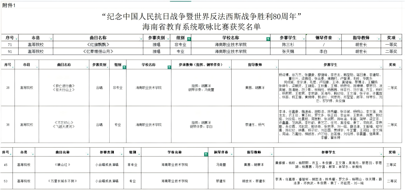 近日,由中共海南省委教育工作委員會、海南省教育廳主辦的“紀(jì)念中國人民抗日戰(zhàn)爭暨世界反法西斯戰(zhàn)爭勝利80周年”歌詠比賽圓滿落幕。我校積極組織師生參與,憑借精彩的演唱和扎實(shí)的籌備工作,在全省眾多參賽單位中嶄露頭角,一舉獲得多個(gè)獎(jiǎng)項(xiàng),用歌聲傳承紅色基因,用激情展現(xiàn)海職風(fēng)采。