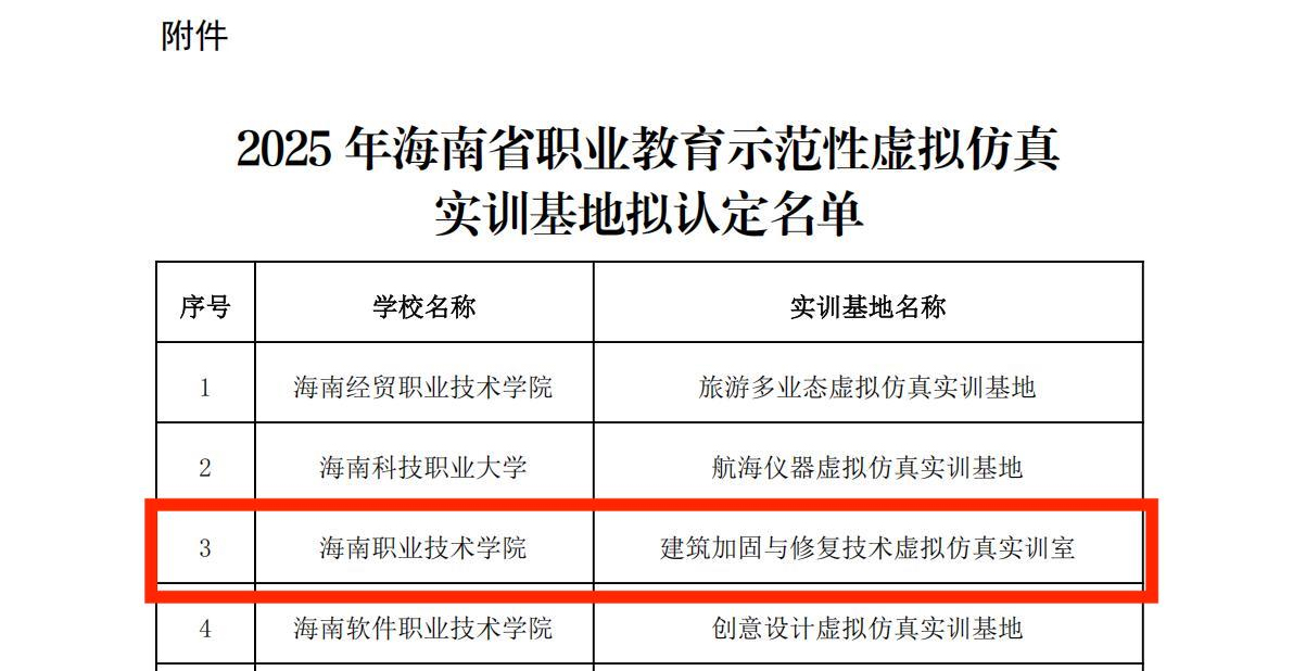 海職院建筑加固與修復(fù)技術(shù)虛擬仿真實(shí)訓(xùn)室獲評(píng)2025年海南省職業(yè)教育示范性基地