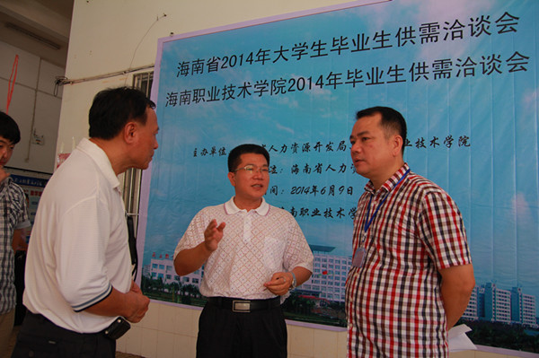 69,由海南省人力資源開(kāi)發(fā)局、海南職業(yè)技術(shù)學(xué)院共同舉辦“海南省2014年大學(xué)生畢業(yè)生供需洽談會(huì)暨海南職業(yè)技術(shù)學(xué)院2014年畢業(yè)生供需洽談會(huì)”在我校舉行。學(xué)校領(lǐng)導(dǎo)王安興、王承慶、梁棟、馬乃祥,以及校長(zhǎng)助理符興干、李琳娜到招聘現(xiàn)場(chǎng)檢查指導(dǎo)。