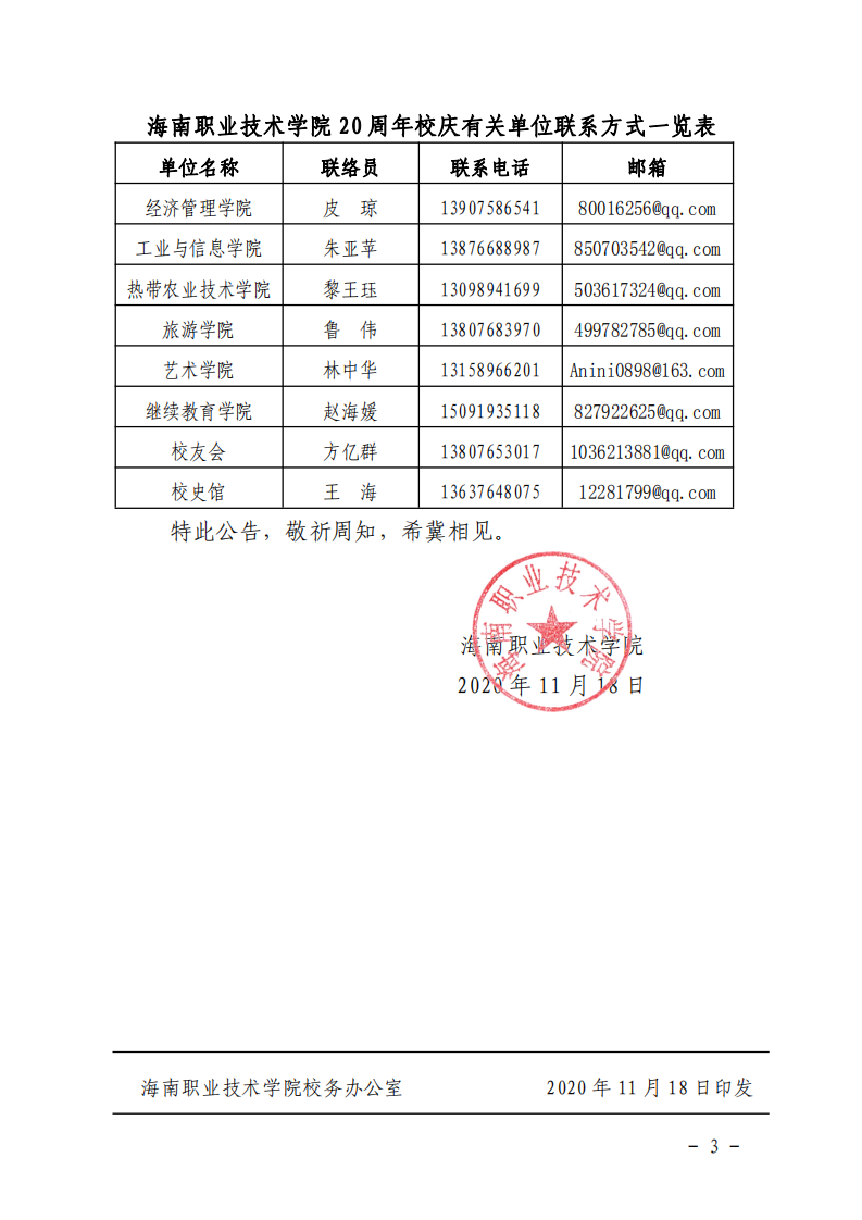 海南職業(yè)技術(shù)學(xué)院二十周年校慶公告(第2號)