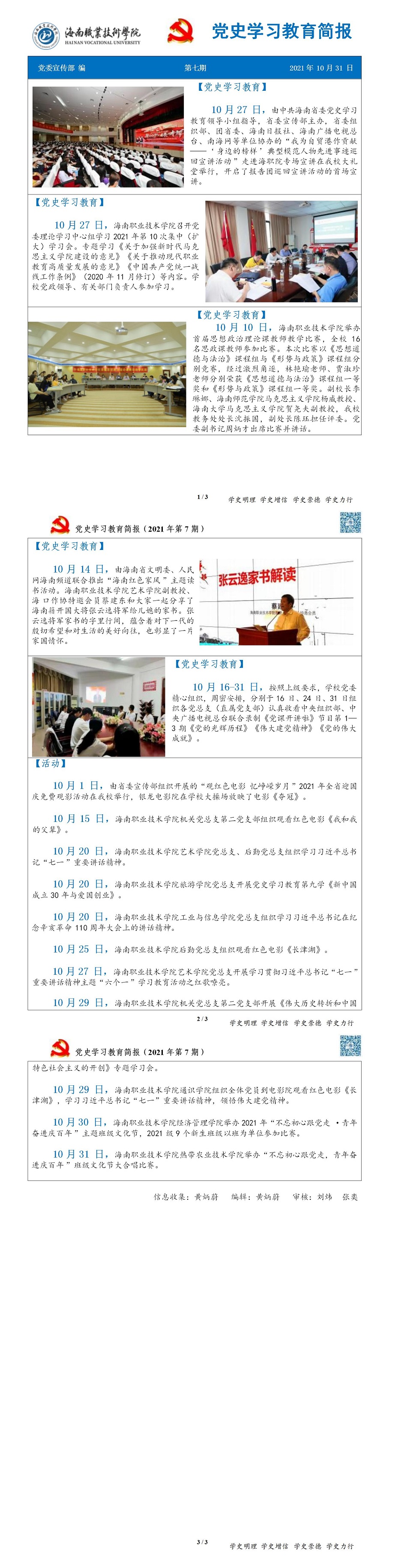 海南職業(yè)技術(shù)學(xué)院黨史學(xué)習(xí)教育簡報(第七期)