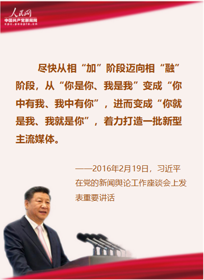 12、盡快從相“加”階段邁向相“融”階段,從“你是你、我是我”變成“你中有我、我中有你”,進而變成“你就是我、我就是你”,著力打造一批新型主流媒體。