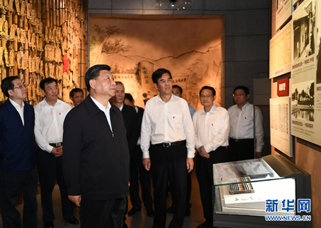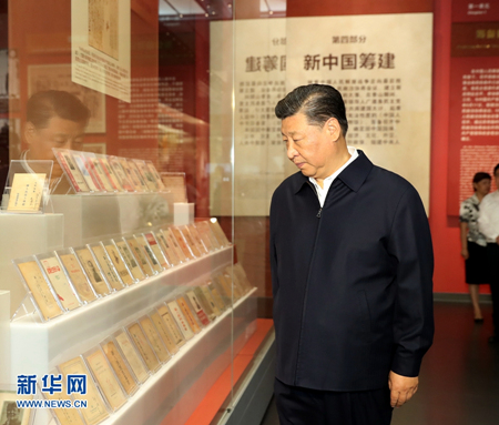 9月12日,中共中央總書記、國家主席、中央軍委主席習(xí)近平視察中共中央北京香山革命紀(jì)念地。這是習(xí)近平在香山革命紀(jì)念館參觀《為新中國奠基》主題展覽。 新華社記者 黃敬文 攝