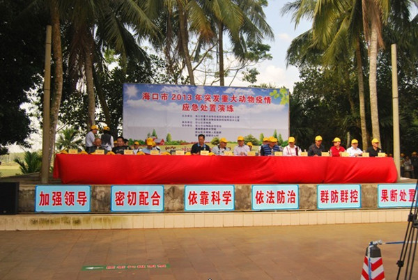 1119,??谑?span lang="EN-US">2013年重大動物疫情應急處置演練在??谑协偵絽^(qū)大坡鎮(zhèn)田心村拉開帷幕。本次演練由??谑修r業(yè)局,海口市瓊山區(qū)農林局承辦;由我校生物工程學院、??谑袆游锓酪邫z疫站、瓊山區(qū)大坡鎮(zhèn)田心村、瓊山區(qū)大坡鎮(zhèn)人民政府協(xié)辦。