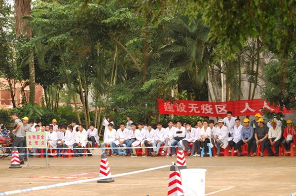 我校生物工程學院院長鄭繼昌教授和卓雪麗同學主持本次演練活動。以20131119日假定AB區(qū)C鎮(zhèn)D村富龍養(yǎng)殖場暴發(fā)高致病性禽流感疫情為背景進行演練。演練共分為疫情巡查,發(fā)現(xiàn)疫情;疫情報告;疫情核實和流行病學調查;應急預案啟動;疫情處置以及疫情解除等六個場景。