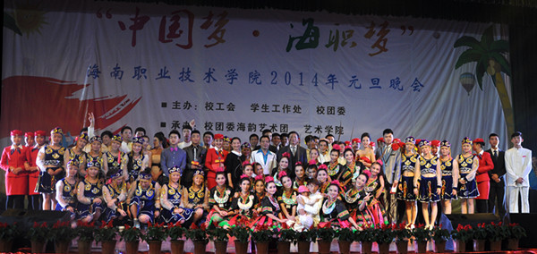 20131227日晚,“中國夢·海職夢”海南職業(yè)技術(shù)學(xué)院2014年元旦晚會(huì)在我校大禮堂舉行。