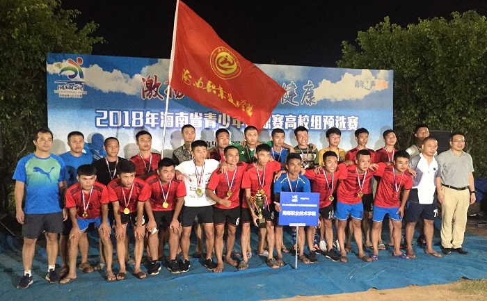 9月6日,“激揚(yáng)青春•快樂健康”2018年海南省青少年足球賽高校組預(yù)選賽頒獎(jiǎng)儀式在世紀(jì)公園足球場(chǎng)舉行,我校代表隊(duì)獲普通組冠軍。我校代表隊(duì)由學(xué)校團(tuán)委書記許昌斌擔(dān)任領(lǐng)隊(duì),陳維國、杜鵬君兩位老師擔(dān)任教練,隊(duì)員們?cè)谫悎?chǎng)上團(tuán)結(jié)協(xié)作、頑強(qiáng)拼搏,彰顯了海職學(xué)子風(fēng)采。