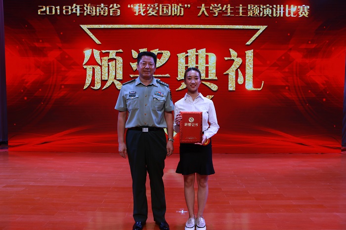 10月30日,2018年海南省“愛我國防”大學(xué)生主題演講比賽總決賽在我校大禮堂舉行。我校藝術(shù)學(xué)院學(xué)生周鈺馨榮獲大賽一等獎(jiǎng)。