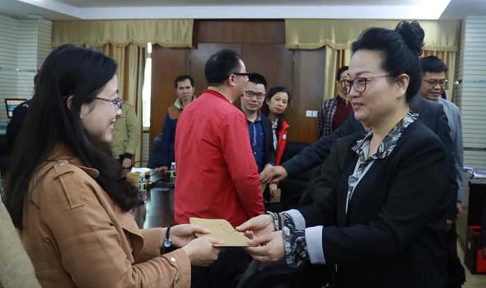 杜明娥為困難黨員和職工送上慰問金(黨委宣傳部供圖)