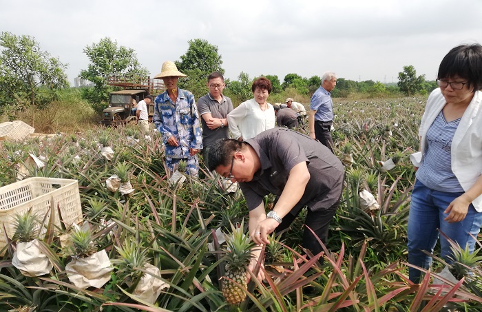 王安興率一行考察天地人生態(tài)農(nóng)業(yè)股份有限公司鳳梨基地(校務(wù)辦公室供圖)