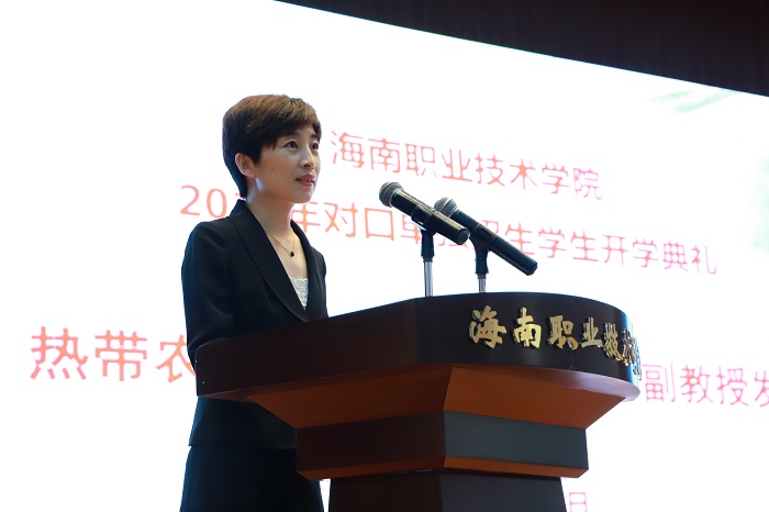 教師代表、熱帶農(nóng)業(yè)技術(shù)學(xué)院師麗敏代表全體教師勉勵(lì)新生要找到合適自己的位置,懷揣夢想,辛勤付出,在學(xué)習(xí)專業(yè)技能的過程中,實(shí)現(xiàn)自我教育、自我管理和自我發(fā)展,不斷提升自我綜合素養(yǎng)。