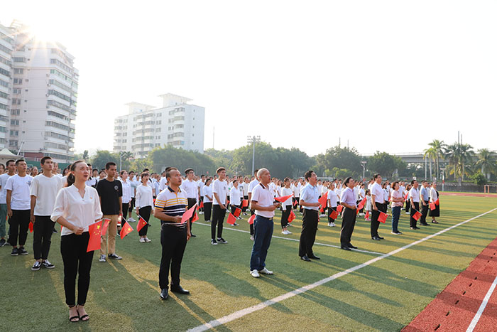 10月1日上午,海職院開展慶祝新中國成立70周年“我和我的祖國”主題教育系列活動,學校黨政領導和師生代表千余人共同開展“同升國旗、同唱國歌”主題活動,集中收聽收看慶祝中華人民共和國成立70周年大會,共慶祖國母親七十華誕。