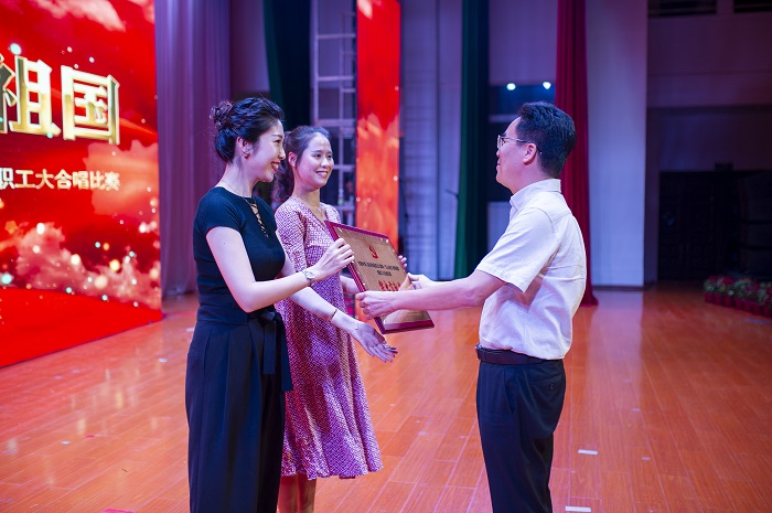 王承慶為大合唱比賽一等獎(jiǎng)獲獎(jiǎng)單位頒獎(jiǎng)(圖書館 梁平攝影)