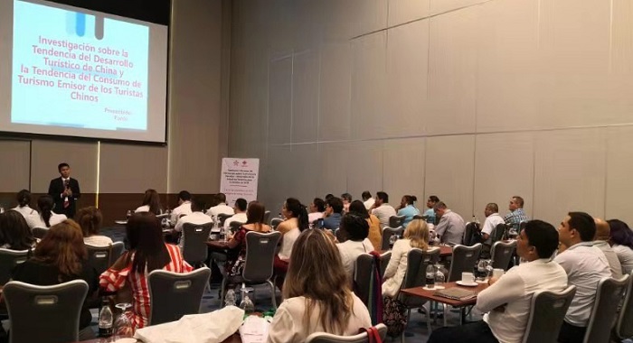 潘富副教授為2019年哥倫比亞橙色經(jīng)濟系列主題-旅游產(chǎn)業(yè)發(fā)展海外研修班授課(國際交流中心供圖)