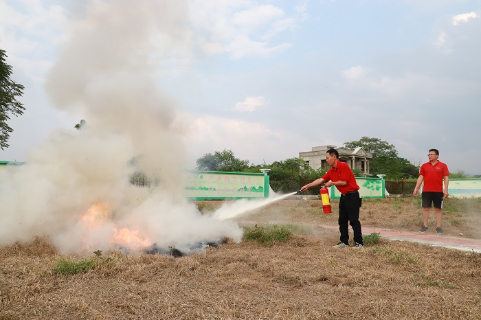 我校消防管理員現(xiàn)場演示滅火器使用方法(黨委宣傳部供圖)