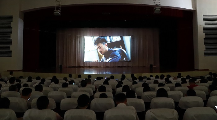 學(xué)校師生集中觀看電影《黑金危機》(黨委宣傳部供圖)