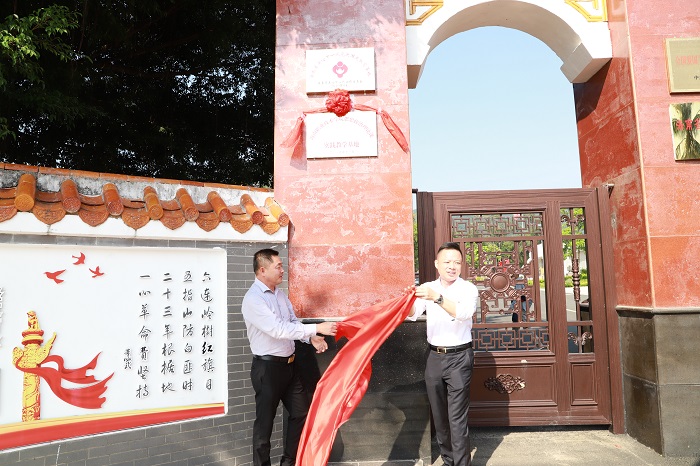 在萬寧六連嶺烈士陵園,萬寧市退役軍人事務(wù)局副局長(zhǎng)陳冰、周炳才共同為海南職業(yè)技術(shù)學(xué)院思想政治理論課實(shí)踐教育基地揭牌。