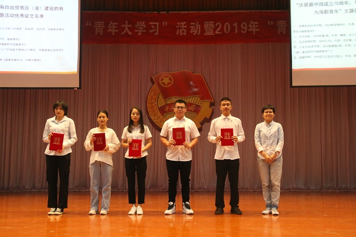 典禮上,于曉洋宣讀本次培訓(xùn)先進(jìn)集體和個人的表彰決定。大會對2個優(yōu)秀團(tuán)組織學(xué)院、300名優(yōu)秀學(xué)員和6名優(yōu)秀征文比賽獲獎人員及“青年大學(xué)生”主題團(tuán)日活動前三名進(jìn)行了表彰。旅游學(xué)院、經(jīng)濟(jì)管理學(xué)院和熱帶農(nóng)業(yè)技術(shù)學(xué)院的優(yōu)秀學(xué)員代表發(fā)表培訓(xùn)學(xué)習(xí)心得體會。