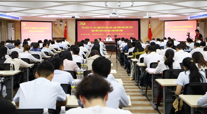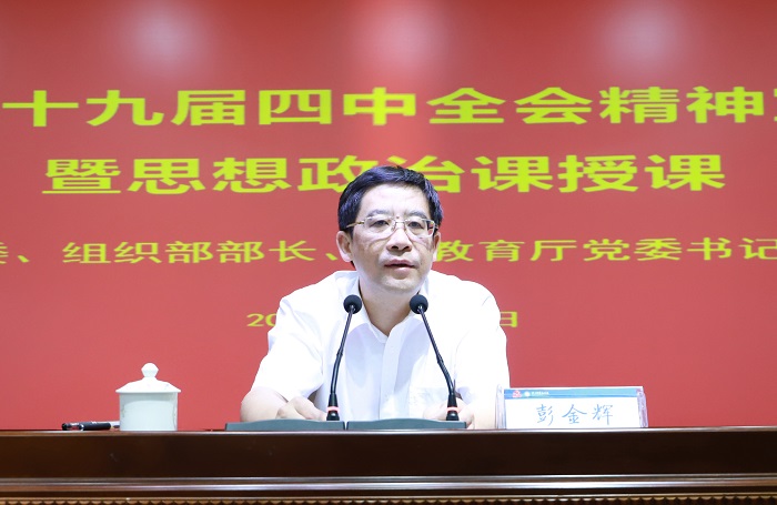 彭金輝宣講黨的十九屆四中全會(huì)精神并講授思想政治課(黨委宣傳部供圖)