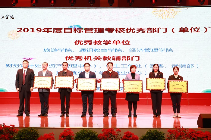 校長(zhǎng)王安興為2019年度目標(biāo)管理考核優(yōu)秀部門(單位)頒獎(jiǎng)(黨委宣傳部供圖)