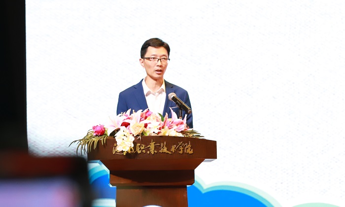 工業(yè)與信息學(xué)院副院長(zhǎng)孟清代表獲獎(jiǎng)教師發(fā)言(黨委宣傳部供圖)
