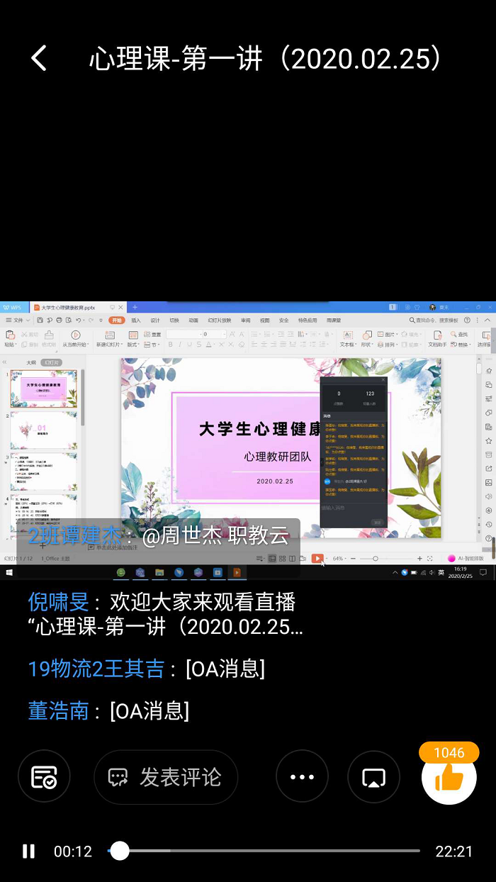 《大學(xué)生心理健康教育》線上授課(通識教育學(xué)院供圖)