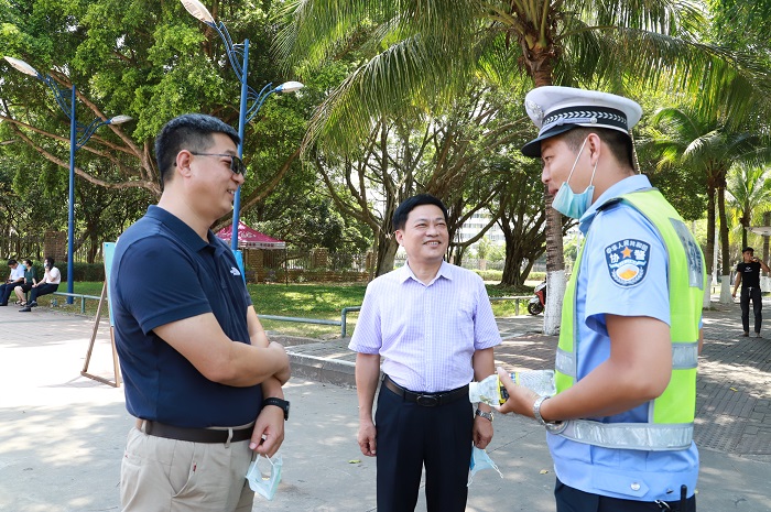黨委書記王承慶和校長王安興看望為我校接待點維持秩序的交警(黨委宣傳部供圖)