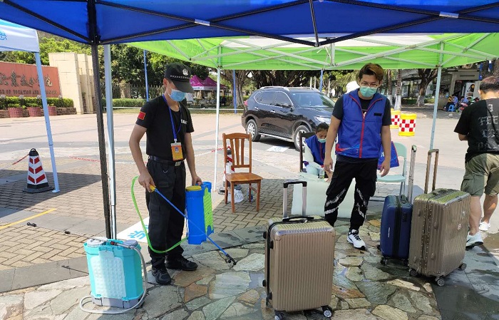 工作人員對行李進行消殺(黨委宣傳部供圖)