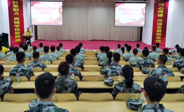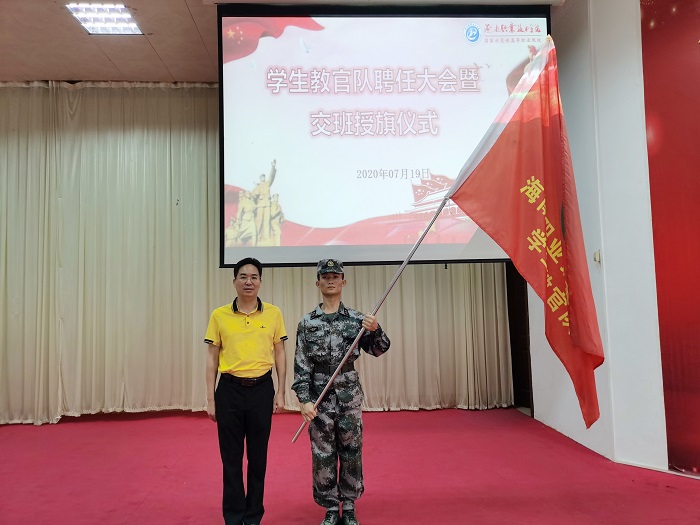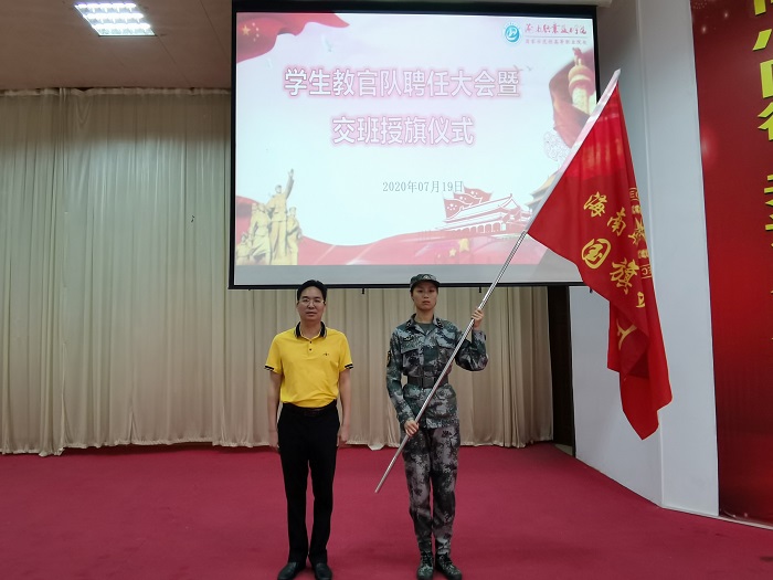 7月19日,我校在學術(shù)報告廳舉行學生教官隊聘任大會暨交班授旗儀式。學校黨委委員、校長助理符興干出席并講話,學生工作處副處長鐘清云主持儀式。