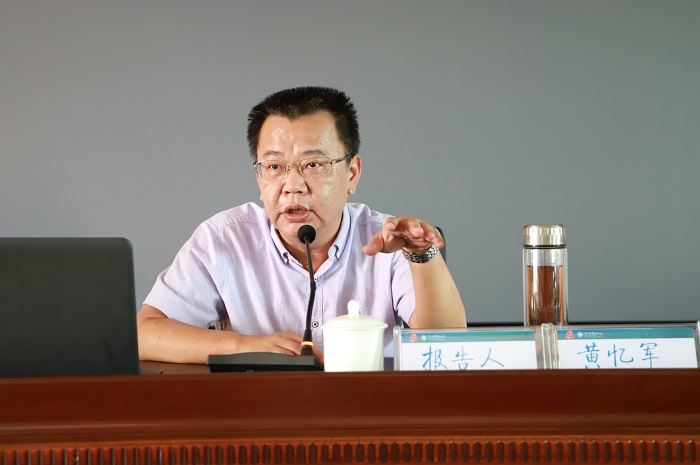 黃憶軍作《充分發(fā)揮宣傳思想工作引領(lǐng)社會(huì)的強(qiáng)大支撐作用》專題講座(黨委宣傳部供圖)