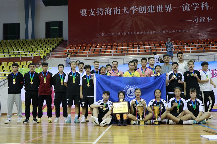 本次比賽女子組采取單循環(huán)積分制,每一場(chǎng)比賽、每一分都至關(guān)重要。在比賽中,全體教練員、運(yùn)動(dòng)員團(tuán)結(jié)一致、奮力拼搏,克服惡劣天氣和場(chǎng)地濕滑等因素,認(rèn)真執(zhí)行技戰(zhàn)術(shù),分別戰(zhàn)勝海南醫(yī)學(xué)院、海南科技大學(xué)、海南政法學(xué)院、海南經(jīng)貿(mào)職業(yè)學(xué)院、海南外國(guó)語(yǔ)職業(yè)技術(shù)學(xué)院、海南工商學(xué)院,以六戰(zhàn)全勝的驕人成績(jī)奪得本次比賽的冠軍,實(shí)現(xiàn)了本賽事的三連冠。男子組采取小組循環(huán),再進(jìn)行交叉淘汰的規(guī)則,男隊(duì)在小組出線后,半決賽以2分之差憾負(fù)海南經(jīng)貿(mào)職業(yè)技術(shù)學(xué)院,在3、4名的爭(zhēng)奪中戰(zhàn)勝海南科技大學(xué)隊(duì)。
