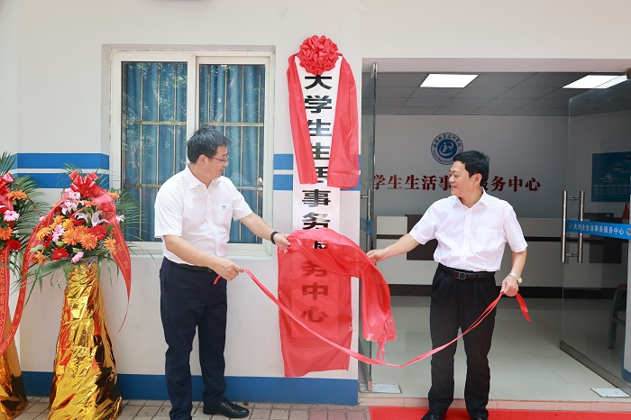王承慶、王安興共同為大學(xué)生生活事務(wù)服務(wù)中心揭牌(學(xué)生工作處供圖)
