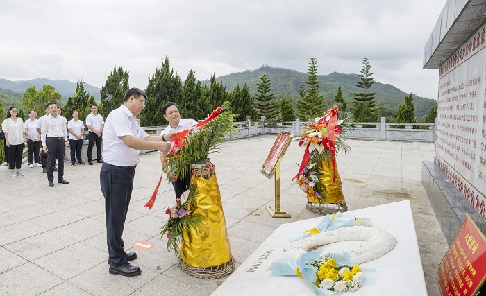 在紀(jì)念園廣場,全體人員認(rèn)真閱覽馮白駒、李明等革命先烈的情況介紹,學(xué)習(xí)他們革命理想高于天、理想信念堅(jiān)如磐石的事跡和精神。在紀(jì)念碑前,王承慶、王安興向革命先烈敬獻(xiàn)花籃,全體人員三鞠躬,瞻仰革命烈士雕塑,時(shí)刻銘記瓊崖革命先烈在解放海南中做出的犧牲。周炳才莊嚴(yán)領(lǐng)誓,全體黨員重溫入黨誓詞。